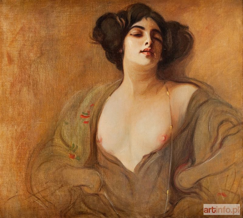 Ów typ przedstawienia był niejednokrotnie powtarzany przez artystę w autorskich replikach, a także reprodukowany jako motyw zdobniczy (np. na emaliowanych, luksusowych wyrobach rzemiosła artystycznego) i przez wiele lat cieszył się niesłabnącym zainteresowaniem wśród odbiorców. Franciszek Żmurko zyskał popularność głównie jako twórca aktów i epatujących erotyzmem portretów kobiecych. Współcześni nazywali go "malarzem-poetą, który jak nikt inny wyśpiewuje czarowny wdzięk i piękność ciała kobiecego". Najczęstszymi motywami pojawiającymi się w twórczości artysty są tematy Hetery oraz Ewy. W starożytnej Grecji hetery były bardzo często wykształconymi kobietami, towarzyszkami istotnych osobistości takich jak politycy, wodzowie czy filozofowie. Od prostytutek odróżniała je niezależność i wysoka pozycja społeczna. Pierwszy z serii obrazów przedstawiających na wpół obnażoną kobietę w zmysłowej pozie powstał około 1906 roku. Został dostrzeżony na dorocznej wystawie w Warszawskiej Zachęcie, zakupiony i przekazany do zbiorów jako dar fundatorów Muzeum Towarzystwa Zachęty Sztuk Pięknych. Franciszek Żmurko naukę rysunku i malarstwa rozpoczął u Franciszka Tepy we Lwowie, a kontynuował w latach 1874- 81 u Jana Matejki w krakowskiej Szkole Sztuk Pięknych oraz w Wiedniu, Rzymie i w monachijskiej Akademii u A. Wagnera (1878- 80). Po studiach, do roku 1882, mieszkał w Krakowie, później osiadł w Warszawie. Wiele podróżował- zwiedził Francję, Niemcy, Holandię, Petersburg. Prace artysty cieszyły się wielkim uznaniem krytyki i publiczności; brał udział w licznych wystawach w kraju (w Warszawie, Krakowie, Lwowie, Wilnie, Żytomierzu) i za granicą, m.in. we Francji, Niemczech, Holandii, Anglii, a także w Chicago i San Francisco. Malował akademickie kompozycje o tematyce antycznej, alegoryczno- symbolicznej, a niekiedy historycznej i religijnej oraz portrety.
