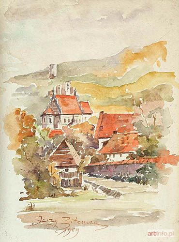 akwarela, ołówek na tekturze, 32,5 x 23,6 cm, sygnowana u dołu "Jerzy Zitzman/1959"