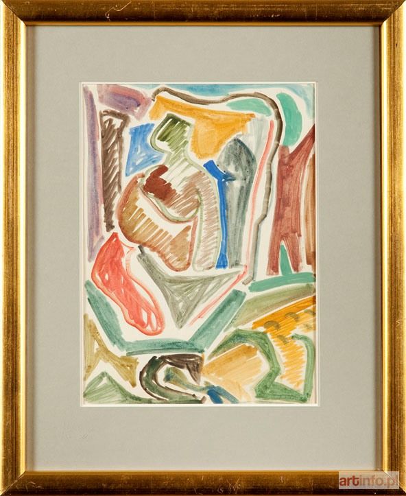 akwarela/papier, 31 x 22,5 cm (w świetle passe-partout) na odwrociu potwierdzenie autentyczności: `Stwierdzam autentyczność pracy Jonasz Sterna ca 1950 r., akwarela | Barbara Jaroszyńska Stern`