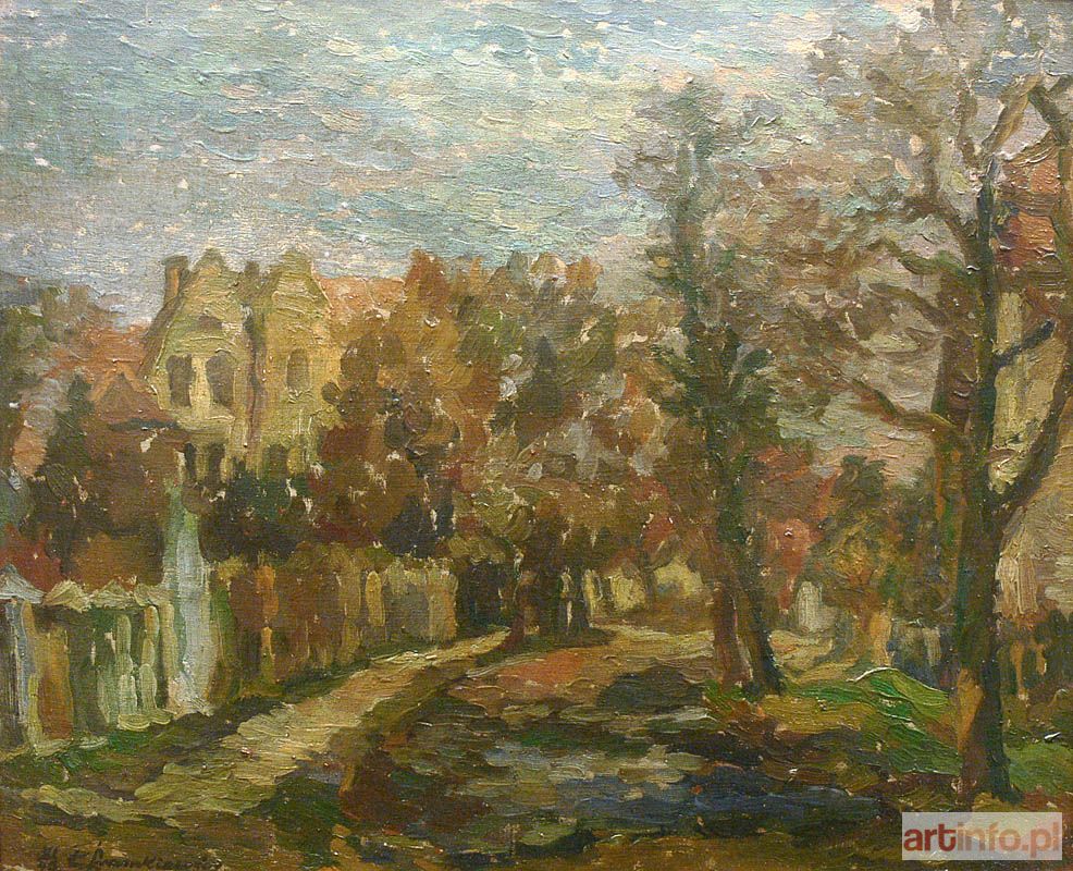 olej, karton, 46 × 55 cm sygn. l. d.: XI/46 K.Śramkiewicz na odwrocie napis autorski: Śramkiewicz Kazimierz/"Ulica Podhalańska w Oliwie- "/46x53-olej XI 1946 oraz nalepka z wystawy Związku polskich artystów plastyków w Gdańsku