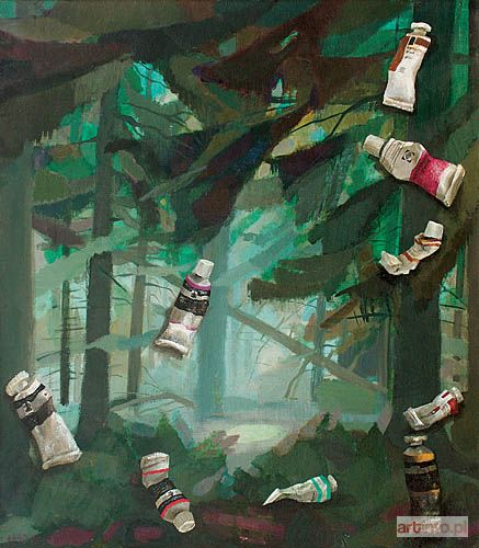 olej, płótno, 80 x 70 cm; sygn. i dat. l.d.: 1990 Maria Anto; na odwrocie na krośnie napis: BZ MARIA ANTO "M.N. W LESIE" 80 x 70 / 21 IX `90 oraz napis na płótnie: Maria Anto 1990 / 959
