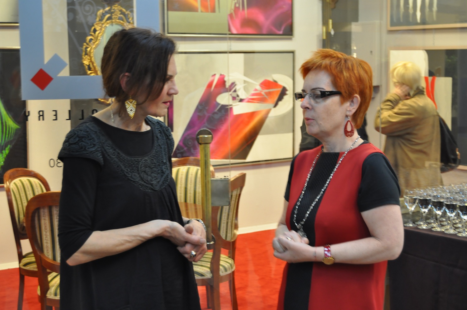 Otwierając wystawę Joanna Dembowska, właścicielka galerii, tak ją zrecenzowała: wystawa ta jest podsumowaniem ostatnich lat pracy obu artystek. Z jednej strony nurty muzyczne Aliny Dorady przenikające się płynnie z motywami florystycznymi i symbolicznym pejzażem - z drugiej zaś - przeżywana w absolutnej ciszy ekstaza tańca baletowego na scenie - powiedziała Joanna Dembowska.