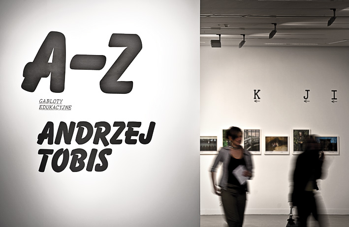 Każdej fotografii z cyklu A-Z (Gabloty edukacyjne) przyporządkowane zostaje słownikowe hasło w języku polskim oraz niemieckim, wraz numerem pochodzącym z indeksu. Słownik jest zresztą tylko pretekstem do kontynuowania poszukiwań kolejnych haseł i opisywania otaczającego artystę świata. Fotografie Andrzeja Tobisa powstają z niezwykłym namysłem i dużą dozą poczucia humoru, ujawniając pułapki zawarte w słowach i znaczeniach, w fotografowanych obrazach i przyporządkowanych im pojęciach. Owe rozliczne przesunięcia, niejasności i niedomówienia stanowią o największej wartości tego projektu. Tobis nie aranżuje sytuacji, utrwala jedynie zastaną rzeczywistość. Część fotografii to portrety przypadkowo spotkanych osób. W tych przypadkach, jak mówi artysta: jeśli ze strony portretowanego pada pytanie "jak mam stanąć", zawsze odpowiadam "jak pan/pani chce". Zadziwiająca bywa też melancholia zawarta w przedstawionych obrazach, które przywołują nostalgiczne wspomnienia minionego czasu - spacery po mieście, zakupy w osiedlowym sklepie czy dziecięce zabawy w parku.