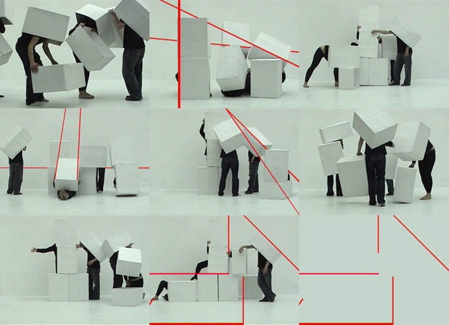 Kolejne odsłony przestrzeni doświadczanej fizycznie, wątki odnoszące się do relacji cielesnych między jednostką a architekturą odkrywały przed publicznością prezentowane w salach CSW prace wideo artystów wizualnych (Cyprien Gaillard, Kate Gilmore, Anna Molska, Joanna Rajkowska, Józef Robakowski, Aleksandra Went/ Alicja Karska), zapisy performances wybitnych choreografów i reżyserów tańca (Frédéric Flamand, Willi Dorner) oraz artystów-architektów (Gianni Pettena). Wśród przedstawionych projektów są również prace studentów warszawskiej ASP realizowane w Pracowni Przestrzeni Audiowizualnej profesora Grzegorza Kowalskiego. Młodzi twórcy Julia Bui-Ngoc (Czołgi na kucyki, Ariadny), Tomasz Kujawski (My-znaki w przestrzeni, Konstrukcja/Dekonstrukcja) i Ewa Śmigielska (My-znaki w przestrzeni, Obiekt w ruchu / ruch obiektu) zaprezentowali zapisy ćwiczeń i prac z przestrzenią.