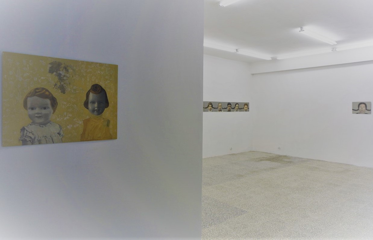 Ważną część wystawy stawowi instalacja, której źródłem jest szkolne zdjęcie z początku minionego stulecia pochodzące z Karlsbadu. Krystyna Piotrowska rozłożyła tę grupową, sepiową fotografię dziewczynek na indywidualne portrety. Ten gest podzielenia jest także pragnieniem zbliżenia się do osobistych historii, osobistych losów nieznanych dziewcząt. Te nowe portrety połączyła warkoczami, symbolicznie splatając ich życia w jedną, już nową historię. Oczywiście gest zaplatania włosów tak ważny w jej artystycznej ikonografii, i tym razem jest znaczący. Teraz jednak ich znaczenie związane z Zagładą, odchodzi w cień, wyrazistsze staje się pytanie o wspólnotę losów, o wspólny dziewczęcy świat, o dziewczyńską tożsamość, której symbolem zdaje się być warkocz.