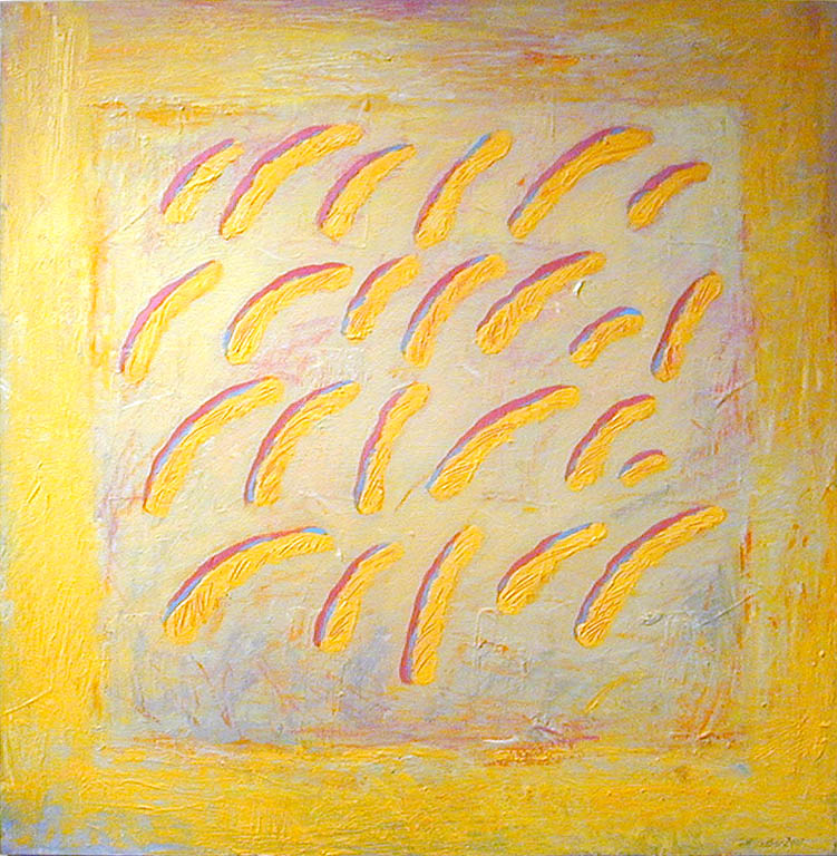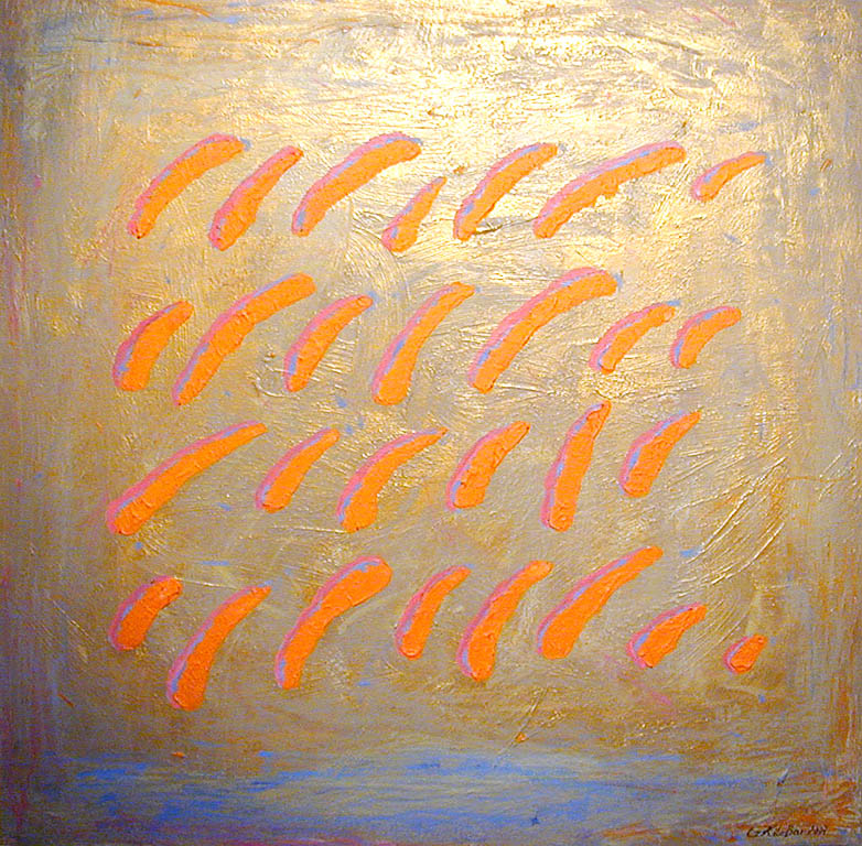 To część nowych kompozycji. W innych, też nacechowanych dynamiką, autorka ustawia w opozycji tło i fakturę. Równiutko założona muzealnym złotem powierzchnia obrazu rozbita zostaje wyciśniętymi prosto z tubki makaronami farby zasychającej w określonym rytmie, nasuwającym skojarzenia z zapisem pisma i matematycznymi wyliczeniami. Konotacje naukowe są tu bardzo na miejscu, gdyż inspiracją dla autorki do namalowania tych obrazów stały się osiągnięcia współczesnej fizyki, badające budowę materii. Świat, według tych teorii zbudowany jest z rozmaitych cząsteczek zawieszonych w próżni. Nie jesteśmy w stanie zobaczyć, jak one wyglądają, lecz z obliczeń naukowców niezbicie wynika, że istnieją. Są tak małe, że prawie nie mają masy. Jak wyglądałyby, gdybyśmy mogli je powiększyć i obejrzeć? Odpowiedź Kilianowicz-Bareckiej jest oczywiście tylko jedną z możliwych, ale interesującą propozycją obrazowania niepostrzegalnego ludzkim okiem świata.