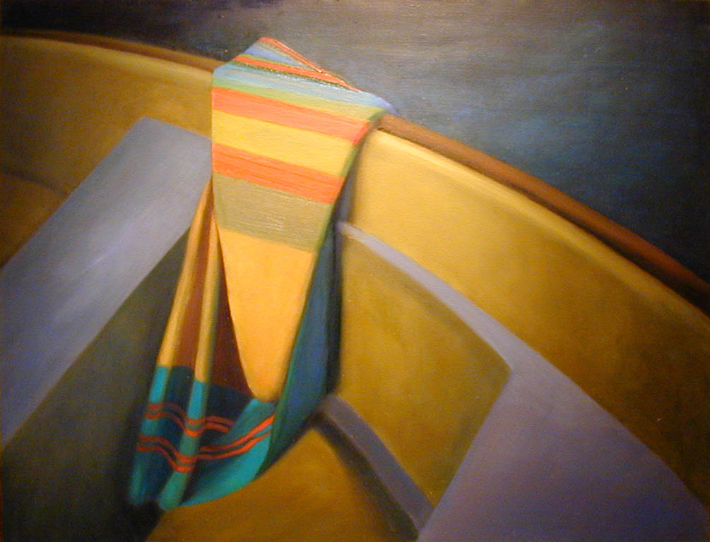 W obrazach Izy Carbiner dominuje zupełnie inna tematyka. Nie ma tu człowieka. Jest natomiast uogólniony, anonimowy krajobraz i przedmiot, wyłaniający się w różnych, coraz mocniej zwężających się planach. Autorka koncentruje się na szczególe, próbując poprzez fragment pokazać całość - pars pro toto. Prezentuje się tu również jako kolorystyka, z wyraźnym upodobaniem do silnych akcentów, kontrastów i mocnych zestawień barw. Jej obrazy przywodzą na myśl cykl "Wisła" Jarosława Modzelewskiego, nie tylko ze względu na portretowanie łodzi, ale i sposób kładzenia koloru.