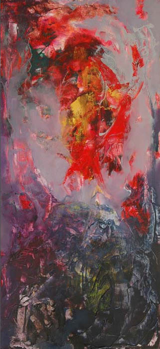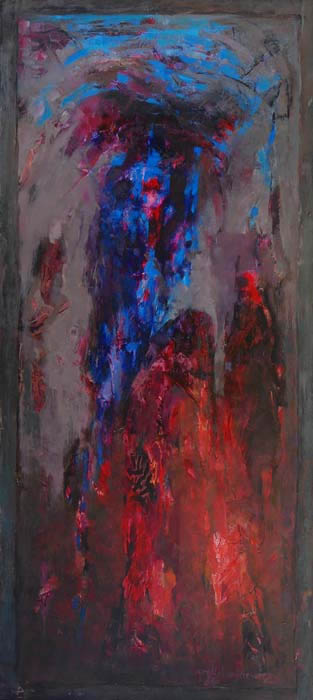 Zaprezentowane na wystawie prace mają formę wydłużonego prostokąta, wyeksponowanego w pozycji pionowej. Pamiętając rozciągnięte wszerz, panoramiczne pejzaże Maślankiewicza widzimy, iż artysta gra z formatami swoich dzieł. Obrazy różnią się od siebie rozmiarami. Jak sugerują to tytuły prace z cyklu Święte Obrazki mają mniejszy format, natomiast Święte Obrazy – większy. Dominują w nich nasycone barwy - błękity, szarości, żółcienie, czerwienie i zielenie, które wydają piąć się ku górze.