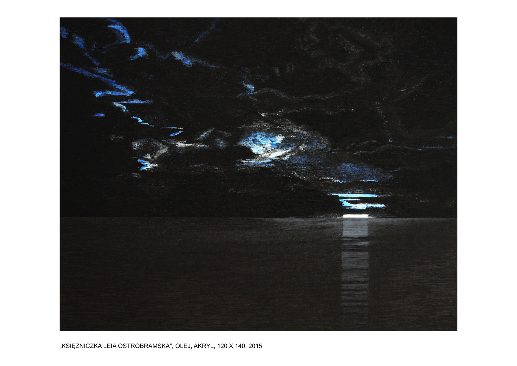 Wystawa Łukasza Rudnickiego na warszawskim Żoliborzu zapowiadała się interesująco. Wiedziony falą zaproszeń internetowych i zapowiedzi pojawiających się w sieci (sic!) zdecydowałem się wybrać osobiście na wystawę tego twórcy, o którym jak fama niesie, panuje opinia, że umie mieszać pędzlem. W dniu wernisażu zanurzyłem się dyskretnie w wieczornej aurze ciepłego wiosennego miasta i wypłynąłem na spotkanie przygody. Wśród szarych murów żoliborskich kamieniczek, majestatycznie sunąłem ulicą Mickiewicza -„Canale Grande” tej zielonej krainy, aby dotrzeć do miejsca przeznaczenia - portu, do którego zawitałem pierwszy raz. Była to kameralna galeria „wystawa”, która zachęcała już z daleka ciepłym światłem sygnalizacyjnym wydobywającym się niewielkich witryn okutych stalowymi ramami, za którymi majaczyły sylwetki pierwszych gości. Kto wie, może byli to już kolejni? Niewielki tłumek kłębił się już przed samym wejściem. Nie zatrzymywałem się jednak w tym przyjaznym gronie i bez ceregieli podążyłem bezpośrednio do wnętrza, aby obejrzeć prezentację. Ledwo znalazłem się tam, poczułem momentalnie zmianę. O ile ciepły wieczór majowego dnia skłaniał się ku zachodowi i wyrażenie rozleniwiał, a wnętrze galerii widziane z zewnątrz rozświetlało szarą uliczkę, nadając jej bursztynowego blasku, o tyle to, co zobaczyłem w środku, z miejsca mnie orzeźwiło. Mógłbym powiedzieć nawet, zamroziło - co by było przesadą, niewątpliwie jednak pierwszym wrażeniem, jakiego tam doświadczyłem była różnica temperatur. I nie mam na myśli stopni Celsjusza, ale morską przestrzeń, która opanowała tę zamkniętą przestrzeń. Chłodny stalowy koloryt wszystkich obrazów niezwykle kontrastował z ciepłym otoczeniem tego akwarium. Mocna, podniosła atmosfera obrazów wołała arktyczną ciszą, na którą składały się metaliczne dźwięki okrętowe zamrożone w lodowatej krze. O właśnie, jakiś zgrzyt roznoszący się w niezmierzonych przestrzeniach zamkniętych w klasyczne ramy obrazów dał się słyszeć każdemu, kto na moment nawet przerwał konwersacje i zerknął w stronę dowolnego płótna. I nawet ściszone rozmowy, przetykane wesołymi reakcjami skrzącymi się w potoku konwersacji nie były w stanie zmienić tego wrażenia. Ten dysonans zbudowany wokół ironiczno-patetycznej opozycji wydaje mi się zabiegiem celowym i niezwykle racjonalnym. Autor prezentacji Łukasz Rudnicki świadomy swojego warsztatu, tak zbudował swoje przedstawienie, żeby na zasadzie kontrastu, jak najlepiej zabrzmiały jego „okrętowe syreny”. Jako doświadczony kapitan, który z niejednego portu pompował paliwo, wiedział, że najlepszym sposobem na zwrócenie uwagi jest ostentacyjna opozycja. Bunt na statku ? Ależ skąd. Załoga, która zawitała na pokład tego dnia była jak zwykle sympatycznie nastawiona i skora do żartów. Nikt chyba jednak nie komentował tego dnia ani obrazów, ani treści współgrających z nimi tytułów: Ja cię kocham, a ty śpisz; Orzeł; Księżniczka Leia Ostrobramska; Już nie czekam na Ciebie; Znajdę Cię, odnajdę na pewno; Mors leniwie obserwuje balon; Jak nie śpisz, to Cię już nie kocham. Aurora. Martwa Fala, Jesteś moim skarbem. Forma i treść zdawać by się mogło kompletnie abstrakcyjne, objawiły się tego dnia niezwykle realistycznie, wręcz naturalistycznie. A cisza, która zapanowała wokół treści tam zawartych, odezwie się echem głośniejszym w przyszłości. Krzyk ciszy - jak mawiał Jan Oborniak - „kultowy autor” Stanisława Barei.