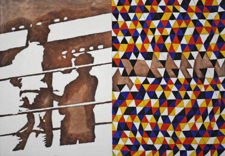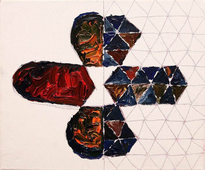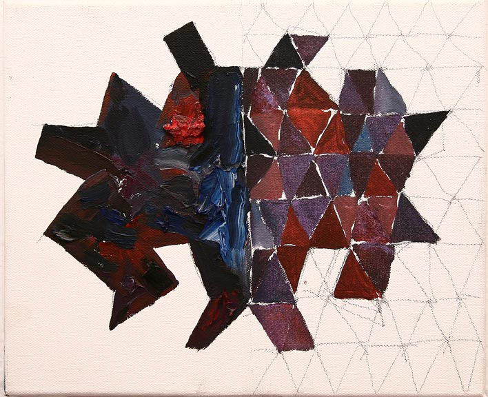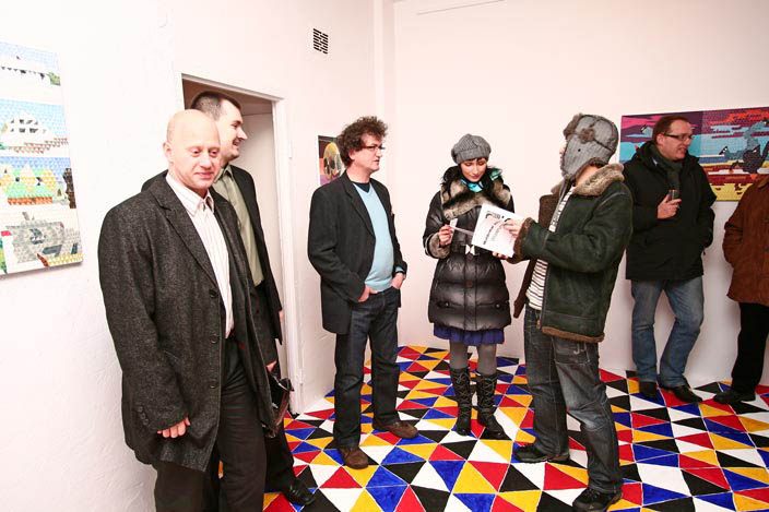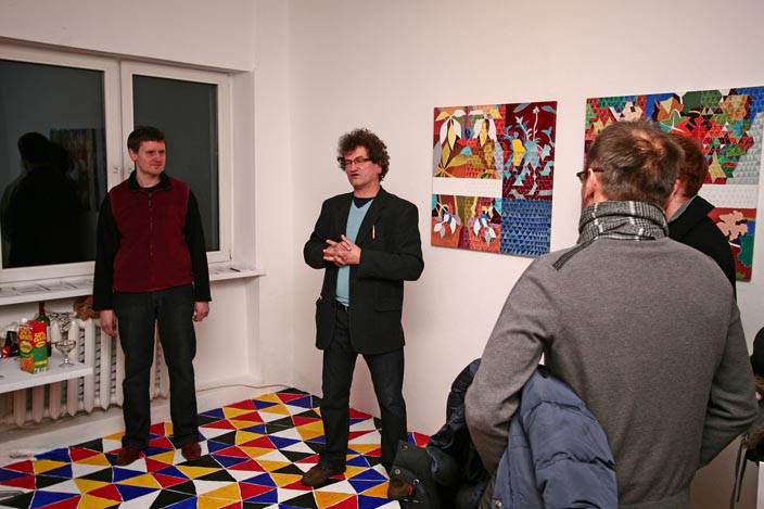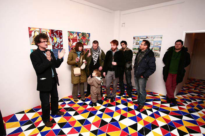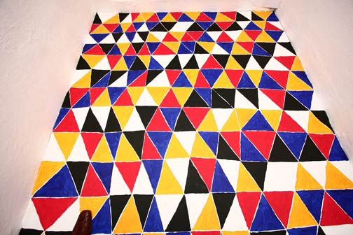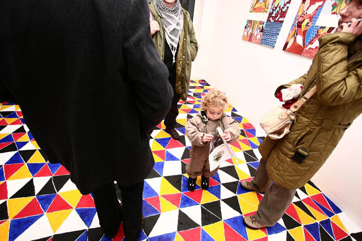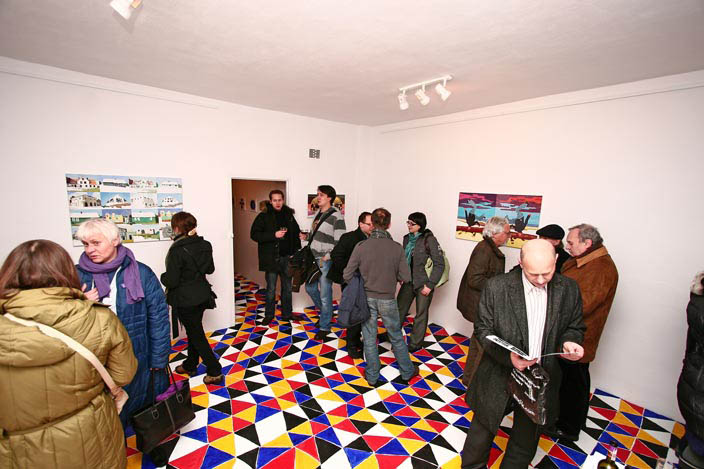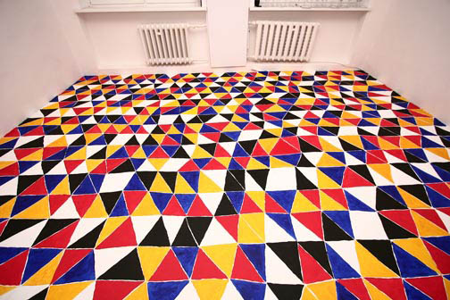 Z użyciem wzoru zbudowanego z  trójkątów, stosując zasadę przemienności podstawowych kolorów oraz bieli i czerni, w Galerii-pl w Gdyni pomalowałem podłogę. Widz razem ze mną może stanąć niczym w wodzie w środku migocącej powierzchni barw. Doświadczyć jednocześnie mroku i jasności oglądając zawieszone na ścianach obrazy - malarskie odpryski różnych doświadczeń z kolorem.