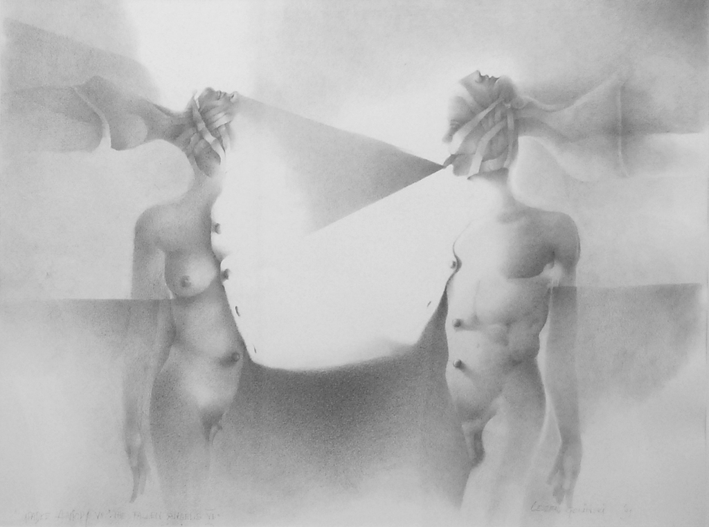 To co w pierwszej chwili uderza w kontakcie z pracami rysunkowymi Leszka Golińskiego to wirtuozeria techniczna. Precyzja z jaką artysta posługuje się tak trudnym medium, kształtowanie formy światłocieniem, niezwykła gama szarości jaką uzyskuje w swoich pracach i głębia, dzięki której obserwujemy wydarzenia w wielu planach budzą respekt oglądającego.