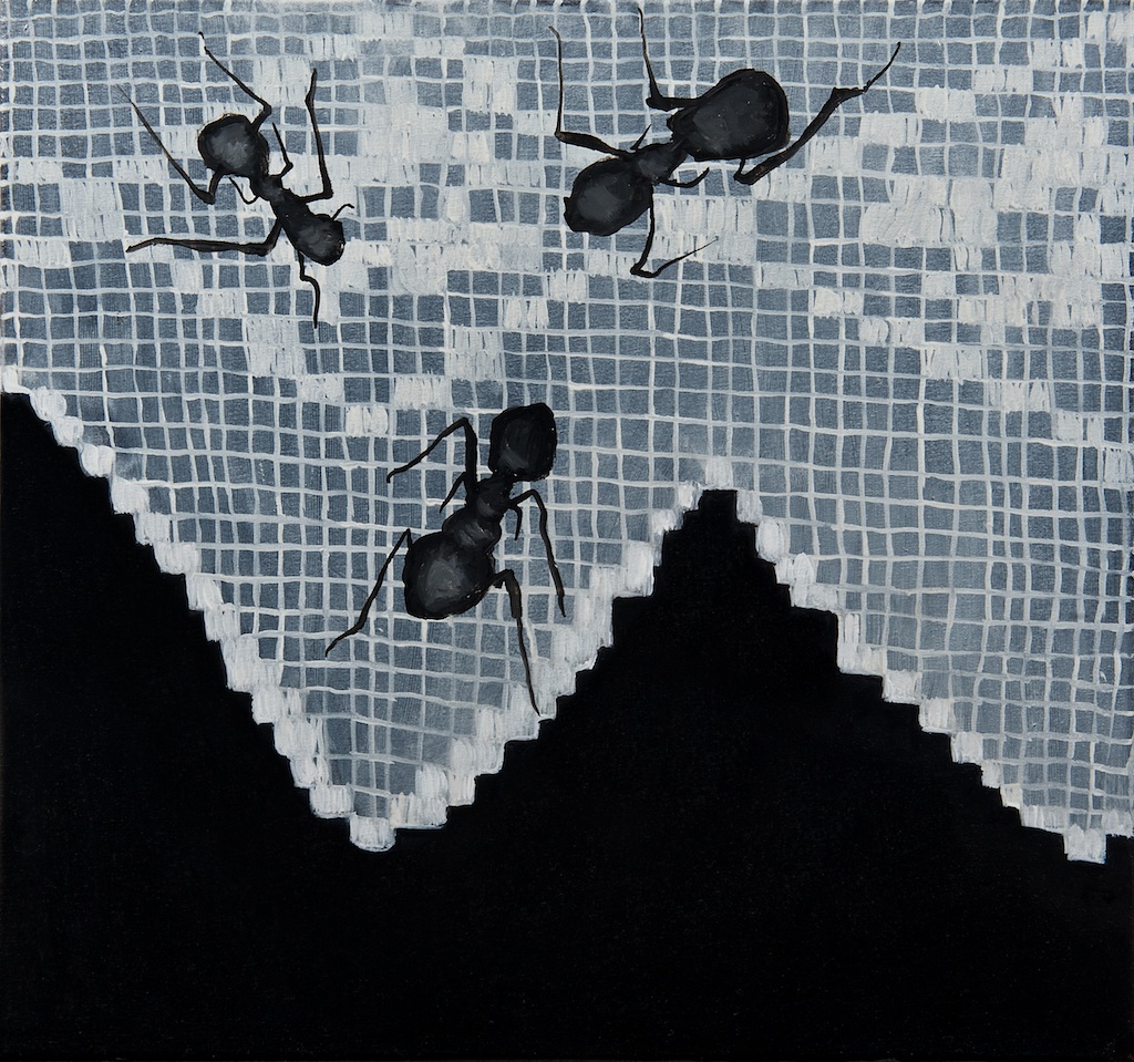 20 października o godz. 18 w galerii Zderzak odbył się wernisaż najnowszych prac Moniki Chlebek. Wystawa nosi tytuł Mrówka kryje się pod ubraniem. To już drugi indywidualny pokaz twórczości (pierwsza wystawa Złe sny miała miejsce w 2010 r.) absolwentki krakowskiej ASP.