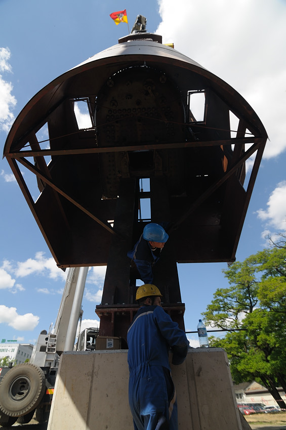 Sama rzeźba już stanęła. Lokomotywa Ty2-1035 w nocy z 21 na 22 czerwca odbyła swoją ostatnią trasę. O godz. 00:00 wyruszyła z Długołęki. Wrocław pokonała ulicami Czajkowskiego, Przybyszewskiego, Kasprowicza i Żmigrodzką. O godzinie  03:40, w blasku fleszy i pod obstrzałem kamer, minęła Most Milenijny, a następnie ul. Legnicką dojechała do stacji końcowej „Plac Strzegomski”. O godz. 9:00 we wtorek miał rozpocząć się  montaż Ty2-1035. Na tę chwilę czekali uzbrojeni w aparaty i kamery reporterzy oraz fotograficy i fotograficy-amatorzy, którzy postanowili wziąć udział w Photo Day, zorganizowanym przy współpracy z portalem Moje Miasto. Niektórzy z nich podjęli się też próby złapania pociągu nocą na trasie przejazdu. Pociąg do nieba miał zostać postawiony przy pomocy trzech dźwigów. Z powodu awarii jednego z nich montaż został przełożony na dzień następny tj. na środę 23 czerwca. Specjalistyczny dźwig zastępczy przyjechał z Katowic. Lokomotywa stanęła ok. południa. Po godzinie 14:00 rozpoczął się montaż torów, będących częścią rzeźby. Wczesnym popołudniem kierownik budowy uroczyście ogłosił zakończenie prac.