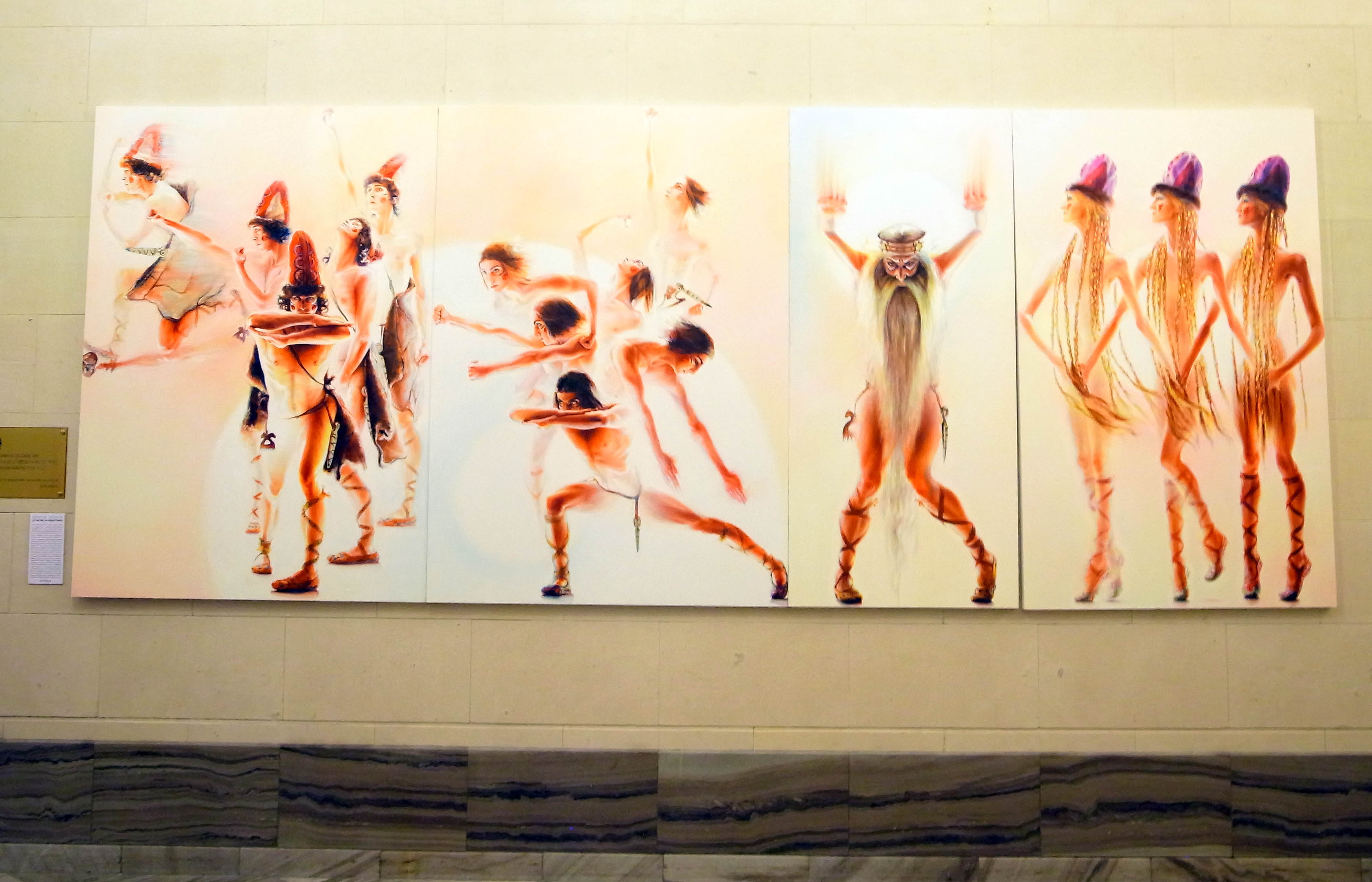 A tak o swoich obrazach mówi artystka: Moje malarskie "Święto wiosny" to próba odkrycia „źródła ruchów”, bezlitośnie wchłaniającego poszczególne osobowości w całokształt choreograficznego rysunku. Multiplikacja jednego tancerza na przestrzeni konkretnych grup scenicznych, tworzy pulsującą hybrydę twarzy, sprężystych kończyn, migoczących warkoczy czy arabeskę wibrujących akcesoriów. Depersonalizacja wzmaga rytm, rosnąca adrenalina - tętno, a magia staje się kluczem do opowieści o romantyzmie poświęcenia jednostki. Święto wiosny to pierwotny kult ziemi oparty przede wszystkim na pulsującym rytmie hipnotyzującej, powtarzalnej ciągłości. Obrazy podzielone są na czternaście płócien, według dwóch aktów baletu. W obydwu przypadkach obserwujemy opowieść o rytualnym cyklu od wschodu słońca do zaniku księżyca, gdzie jedno z drugim współistnieje i przenika się, tworząc trzecią wartość - magię.