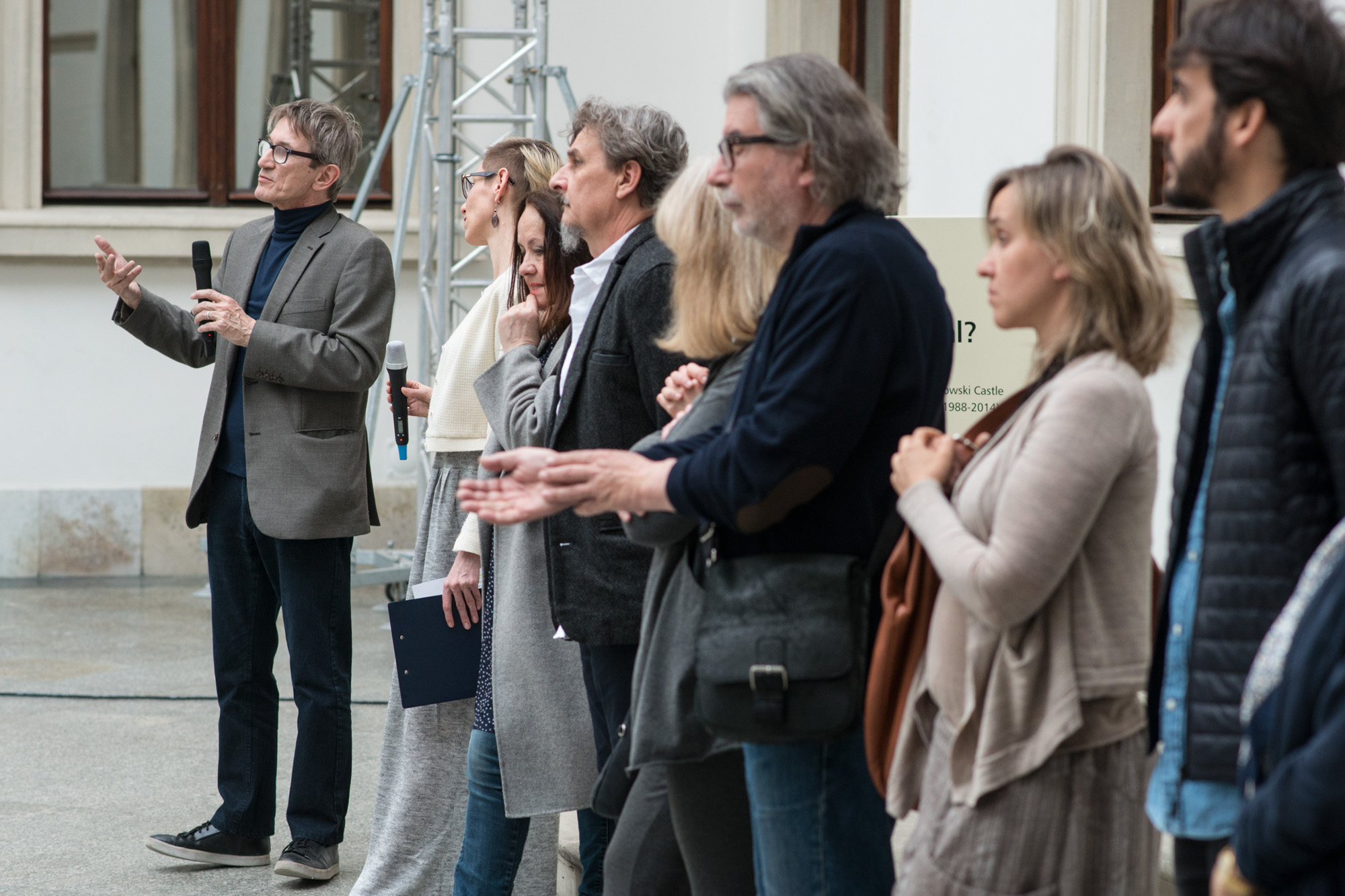 To temat chętnie podejmowany przez kuratorów sztuki, którzy otwierają się na tych widzów, którzy niezbyt często odwiedzają muzea i galerie. Grzegorz Borkowski - kurator - udowadnia, że to nic nowego i wystawą przywołał wydarzenia z ostatniego ćwierćwiecza, odbywające się pod auspicjami Zamku Ujazdowskiego. Pokaz z udziałem kilkudziesięciu artystów z najwyższej światowej i rodzimej półki nie jest przeglądem prezentacji we wnętrzach CSW, lecz wyborem akcji, interwencji, działań pod patronatem zamkowym. Miejscem niektórych były zewnętrzne mury centrum, inne odbywały się w najbliższym sąsiedztwie, kolejne pojawiały się w rozmaitych miejscach Warszawy, a jeszcze inne - gdzieś na wsi, z dala od stolicy.