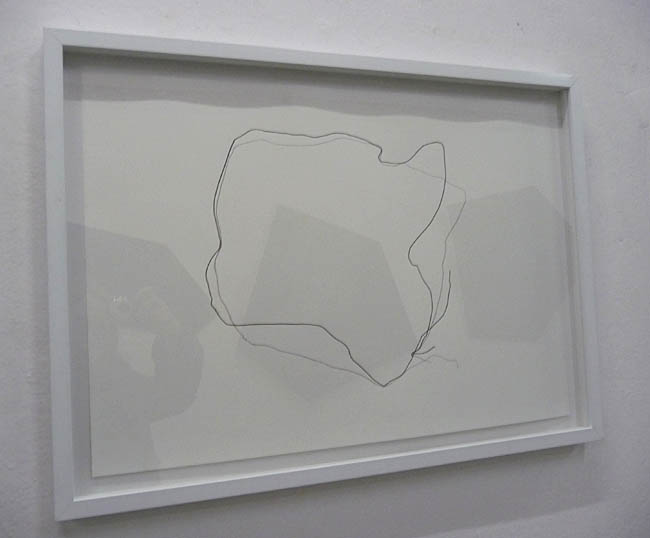 Czerń dyskretna, grafitowa, z metalicznym połyskiem ujawnia się w serii trzech rysunków pokazujących poprowadzoną linię drutu wraz z zaznaczoną linią jego cienia. Powstałe abstrakcyjne kompozycje, linearne abstrakty stanowią zapośredniczoną obrazowość z zaobserwowanej i zarejestrowanej przez artystę rzeczywistości.