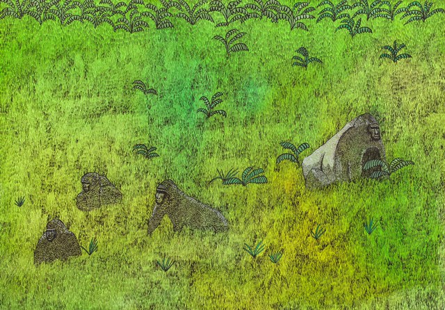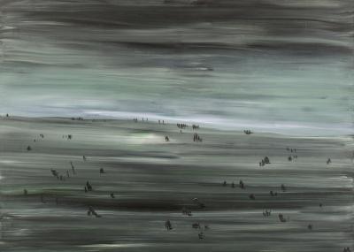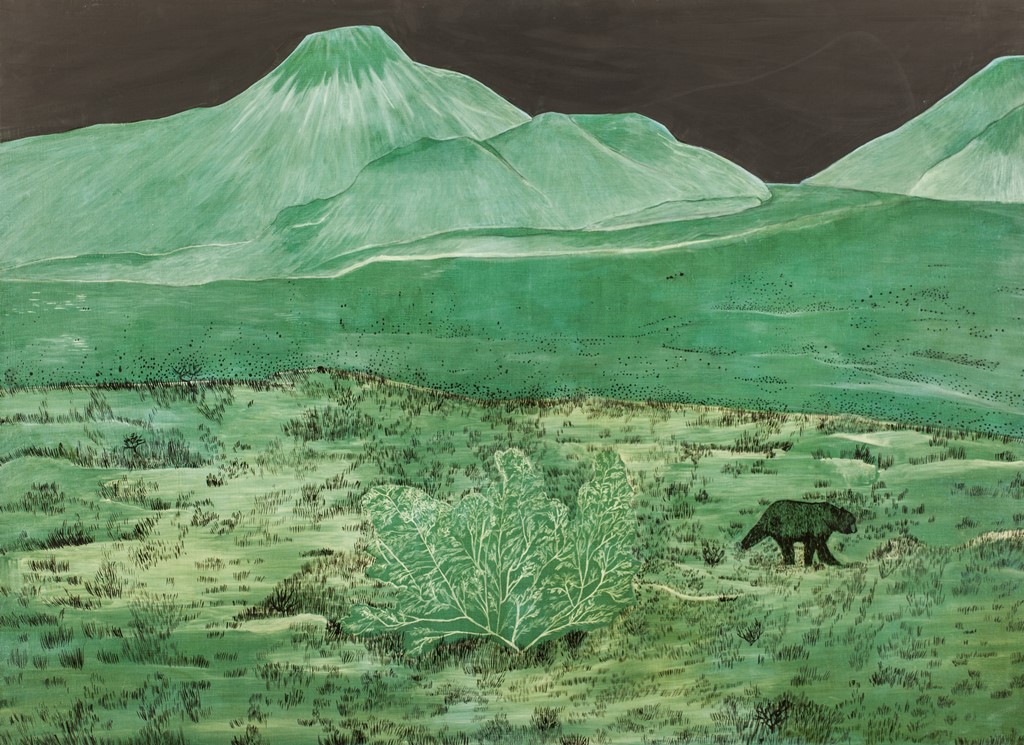 Malarstwo Aleksandry Bujnowskiej z Warszawy - laureatki III nagrody w wysokości 10 tys. zł ufundowanej przez Prezydenta Bielska-Białej - to melancholijne pejzaże. Szerokie egzotyczne pejzaże, z charakterystycznymi zwierzętami: gorylami, niedźwiedziem. Albo rozlana szeroko woda, z dwoma mężczyznami w kapeluszach, płynących w łódkach odpychanych długimi kijami od płytkiego dna. Przejmująca cisza wibruje w tych chłodnych pejzażach. Czuje się, że ten świat niedługo zginie, sielanka zostanie zmieciona wdzierającą się wszędzie cywilizacją - charakteryzuje obrazy Aleksandry Bujnowskiej Agata Smalcerz, dyrektor Galerii Bielskiej BWA, członek jury Bielskiej Jesieni 2017.