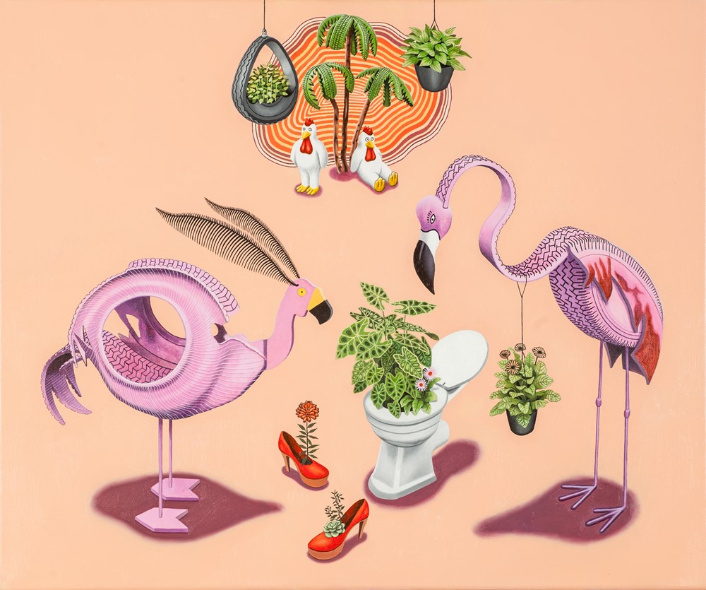 Nagrodzone obrazy Karoliny Jabłońskiej z Krakowa - laureatki II nagrody w wysokości 20 tys. zł ufundowanej przez Marszałka Województwa Śląskiego - przedstawiają ludzi lub łączące ich relacje. Te płaskie, świadomie naiwne, prymitywistyczne kompozycje kreują skrajnie indywidualny świat alternatywny przesączony specyficznym poczuciem humoru, dziwnością i nutką horroru - tak opisał obrazy Karoliny Jabłońskiej członek jury Ryszard Ziarkiewicz.
