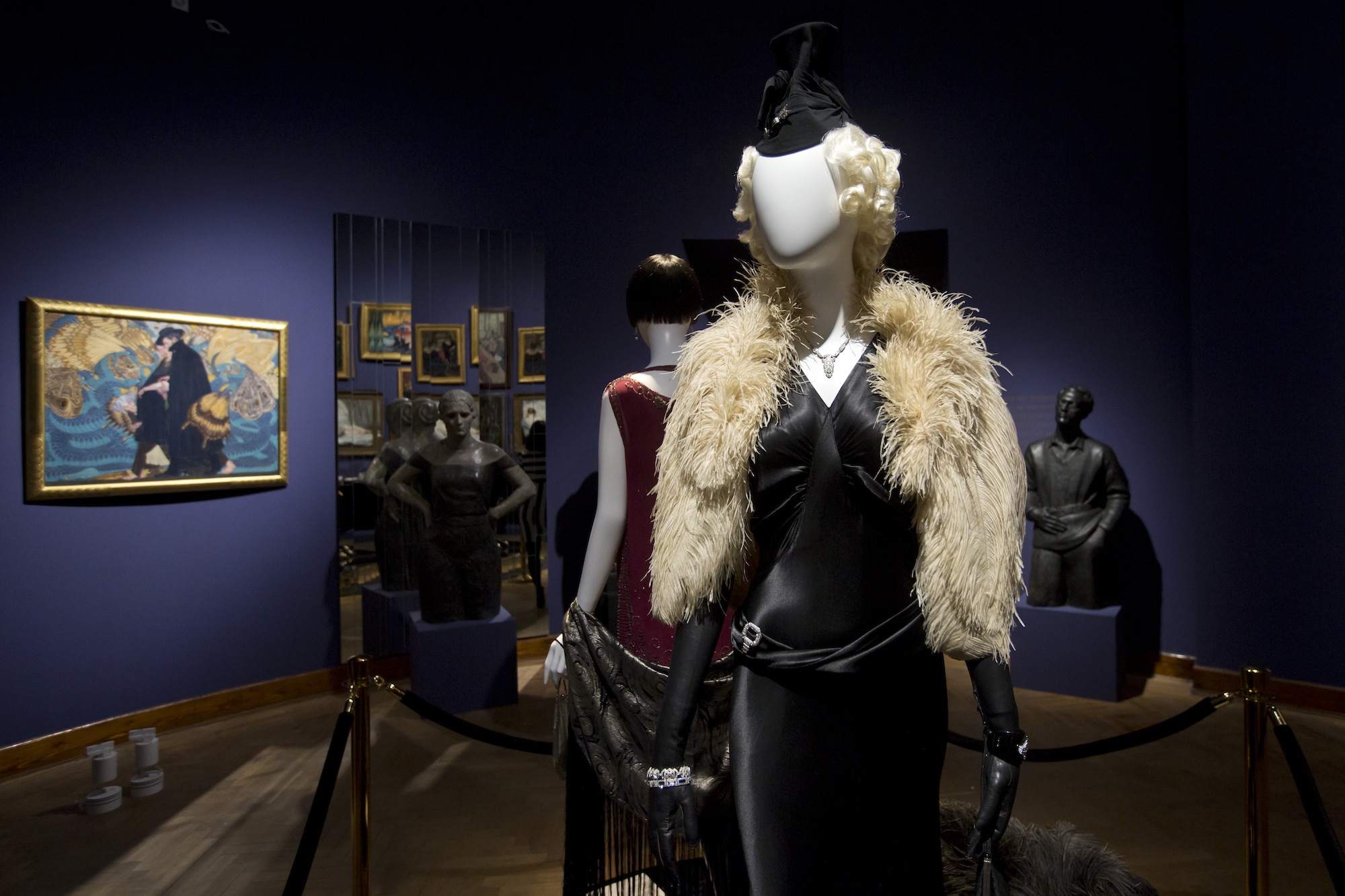 Prezentowane obrazy, rzeźby, meble, plakaty, zaproszenia oraz stroje i przybory toaletowe przenoszą widza w klimat przygotowań do balu w Warszawie okresu międzywojennego. Eksponaty pochodzą ze zbiorów Muzeum Narodowego w Warszawie, uzupełnione o dzieła z kolekcji członków Stowarzyszenia „Przyjaciele MNW”, Agnieszki i Marka Roeflerów, zbioru dzieł artystów polskich związanych z École de Paris, oraz Adama Leja, historyka sztuki, posiadacza największej w Polsce kolekcji ubiorów dawnych, którym opiekę kuratorką zapewniła Renata Higersberger, kustosz w Zbiorach Sztuki Polskiej MNW.