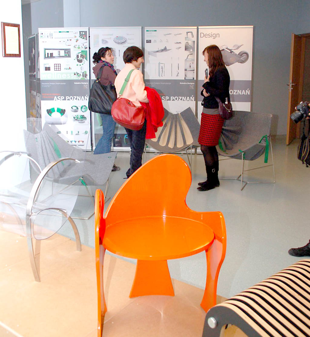 Podsumowaniem Dnia Designu był wernisaż trzech wystaw "dizajnerskich". Każda z nich miała nieco inny charakter. Znana już dobrze z prezentacji w Warszawie i Tarnowie Podgórnym prezentacja AXOR Massaud Inspiracje przygotowywana w trybie biennale przez HansGrohe to fotograficzna impresja młodych polskich fotografów zrzeszonych w Studio Melon. Niezwykłe zdjęcia inspirowane armaturą projektu Jean-Marie Massaud udowadniały, że wyjątkowy dizajn może być sztuką i może podjudzać sztukę. Wystawa pokonkursowa 6 edycji PRODECO 2007 pokazywana wcześniej w warszawskiej Domotece, w Poznaniu zyskała na półprofesjonalnej i estetycznej aranżacji, prezentując się naprawdę ciekawie. Najciekawszą jednak okazała się wystawa najlepszych dyplomów z designu Akademii Sztuk Pięknych w Poznaniu oraz Politechniki Poznańskiej. Pokazała zarówno zrealizowane projekty, jak i projekty w formie plansz. Widać w nich wiele pomysłowości, uczciwe podejście do materiału, realistyczne otwarcie na przemysłowe wdrożenia i brak lęku w kreacji czyli to co najważniejsze - liczenie się ograniczeniami, ale nie ograniczanie się nimi. To dobra wróżba na przyszłość i konkretna propozycja dla polskich firm, zwłaszcza meblowych.