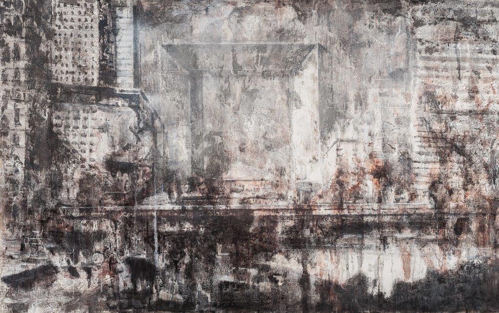 Marcin Szymielewicz odkrywa przed nami swoje najnowsze wrażenia z trwającej podróży po europejskich miastach, gdzie szuka tego, co wspólne dla kultury naszego kontynentu. Co znajduje? Wydaje się, że dostrzegł przede wszystkim zagubienie pomiędzy bliżej jeszcze nieokreśloną nowoczesnością, kreowaną przez zmiany społeczne, obyczajowe i ekonomiczne, a bogactwem wyrastającym z tradycji. To co wspólne dla człowieka, to poszukiwanie duchowości, idei określającej nasze miejsce w świecie. Śladem poszukiwań owego wyższego odniesienia są obrazy wnętrz świątyń, może dosłowne, bo pokazane tu jako skąpane tajemniczej atmosferze. Ale artysta widzi, że współcześnie panują inne rodzaje kultu, dlatego nowym świątyniom poświęca nawet więcej uwagi. Nie chodzi tylko o świątynie religii pieniądza, co jest obecnie często krytykowane (nota bene La Défense u Szymielewicza często portretowane, było miejscem manifestacji ruchu Oburzonych) i nieco już banalne, ale także o kult doskonałości technicznej wyrażonej w coraz wyższych i bardziej skomplikowanych wieżach sięgających nieba. Dla artysty topos to ciągłe poszukiwanie przez Europejczyków dowodów na własną doskonałość w przekraczaniu granic, a zmieniające się warunki, wiodące idee i przekonania są tylko kolejnym tematem do zilustrowania. Czy to dawne monumentalne świątynie wznoszone dla Boga, czy dzisiejsze gmachy ze szkła i betonu są tym samym: grą z formą, która ma udowodnić nieograniczoność ludzkiej kreatywności i pokonać czas. A jednak „podrapane” rysunki-obrazy Szymielewicza, gdzie tło sprawia wrażenie, jakby odsłaniało się na kolejnych warstwach odpadających tynków, jest plastycznym komentarzem do nieubłaganego działania czasu, któremu nawet współczesne twory architektoniczne zostaną poddane.