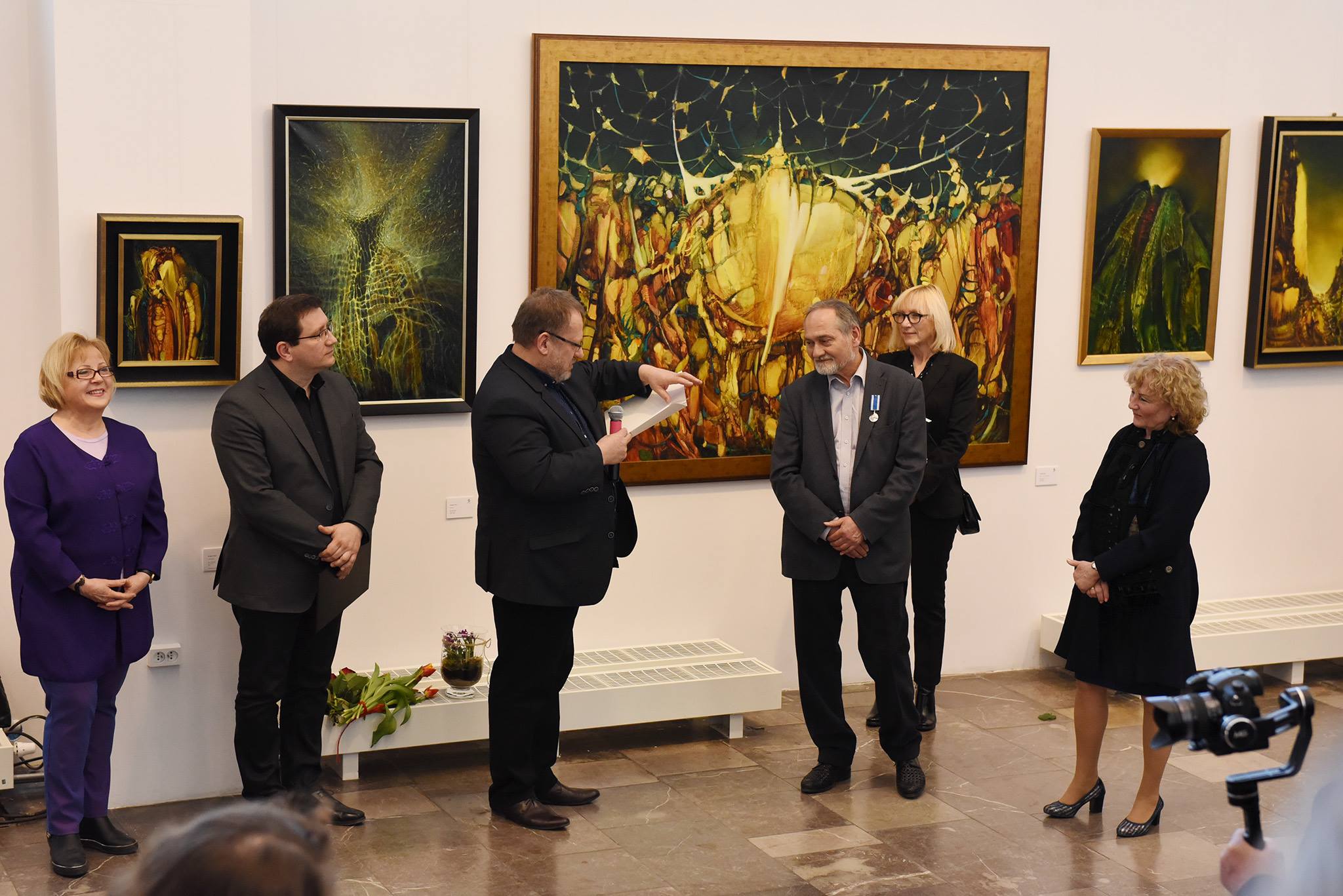 W uroczystym otwarciu udział wzięli m.in. Stanisława Tabisz - Rektor Akademii Sztuk Pięknych w Krakowie, Joanna Warchoł - Prezes ZPAP Okręgu Krakowskiego, Gabriela Matuszek-Stec - Kierownik Podyplomowych Studiów Literacko-Artystycznych Wydziału Polonistyki Uniwersytetu Jagiellońskiego, Zbigniew Grzyb - Dyrektor Nowohuckiego Centrum Kultury, Joanna Lewińska - kierownik Galerii CENTRUM i kurator wystawy oraz autor.