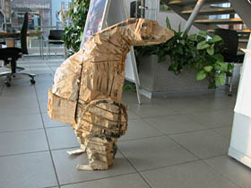 Prace Wojtka Pustoły, gdyby chciało się znaleźć dla nich szufladkę, nazwać można by rzeźbą animalistyczną. Takie określenie powoduje natychmiast gabinetowe skojarzenie ze statuetką wielkości 15 centymetrów, służąca za podręczy przycisk do papieru. Psy Pustoły nie mają z tym nic wspólnego. Są w pełni psie w swoim charakterze, a więc wielkości psio naturalnej, w pozach instynktownych - na grzbiet przewrócone w zabawie, w erotycznym zapamiętaniu atakujące gałąź, obsikujące drzewo i warujące po komendzie swego pana. Maja też diabelskie pomysły szczeniaków, mądre oczy przyjaciół, a czasem agresywną głupotę pożyczoną od niemądrych właścicieli. Ich bryła poszarpana od siekierki i piły jest w pełni adekwatna, jak zjeżona na szczotkę sierść wilczura na widok nie lubianego kolegi zza płotu czy też strąki bernardyna cuchnące po deszczu. Jest w tych psach Pustoły też i metafora człowieczeństwa, bo przecież pies robi się podobny do swojego pana, każdy z nas to wie. Dlatego nie wszystkie psy Pustoły są ładne, mądre i dobre. Są za to ciekawe.