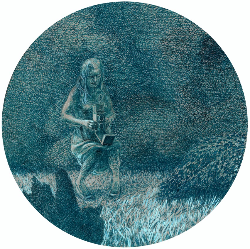 Autor przedstawia dwie formy rysunku, pokazane jak w fotoplastikonie - uchwycone w optyce soczewki koła, bądź formy zamknięte w prostokącie. Kolorystyka i drobiazgowa kreska rysunków poznańskiego artysty przypominają dawne fotografie. Odrealnione postaci kobiet, subtelne odsłony tajemniczych pejzaży przywołują obrazy z początku poprzedniego wieku. Każda kreska jest dokładna, wyważona, naniesiona pieczołowicie na materię papieru, nie pozostawiającego miejsca na błąd. Precyzyjny rysunek oddający fakturę kamienia czy piasku, gąszcz liści w Altdorferowskim ujęciu, pozwalający rozpoznać przedstawiany gatunek, rejestruje nadrzeczywistość. Nie chodzi tu o kolejną interpretacją znanego nam świata, lecz o przywołanie dziwnego nierealnego nastroju.