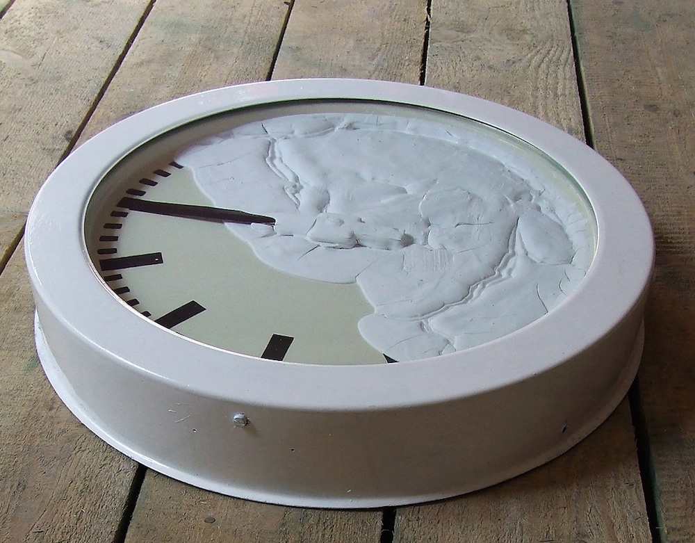Nad całością kompozycji dominuje zegar, w którym zatrzymała się wskazówka. Czas przestał płynąć, unieruchomiony zaklęciem artysty. Każdy odwiedzający zetknie się w galerii z atmosferą nasiąkniętą delikatną metafizyką, z czasem i ruchem ujarzmionym ręką maga.