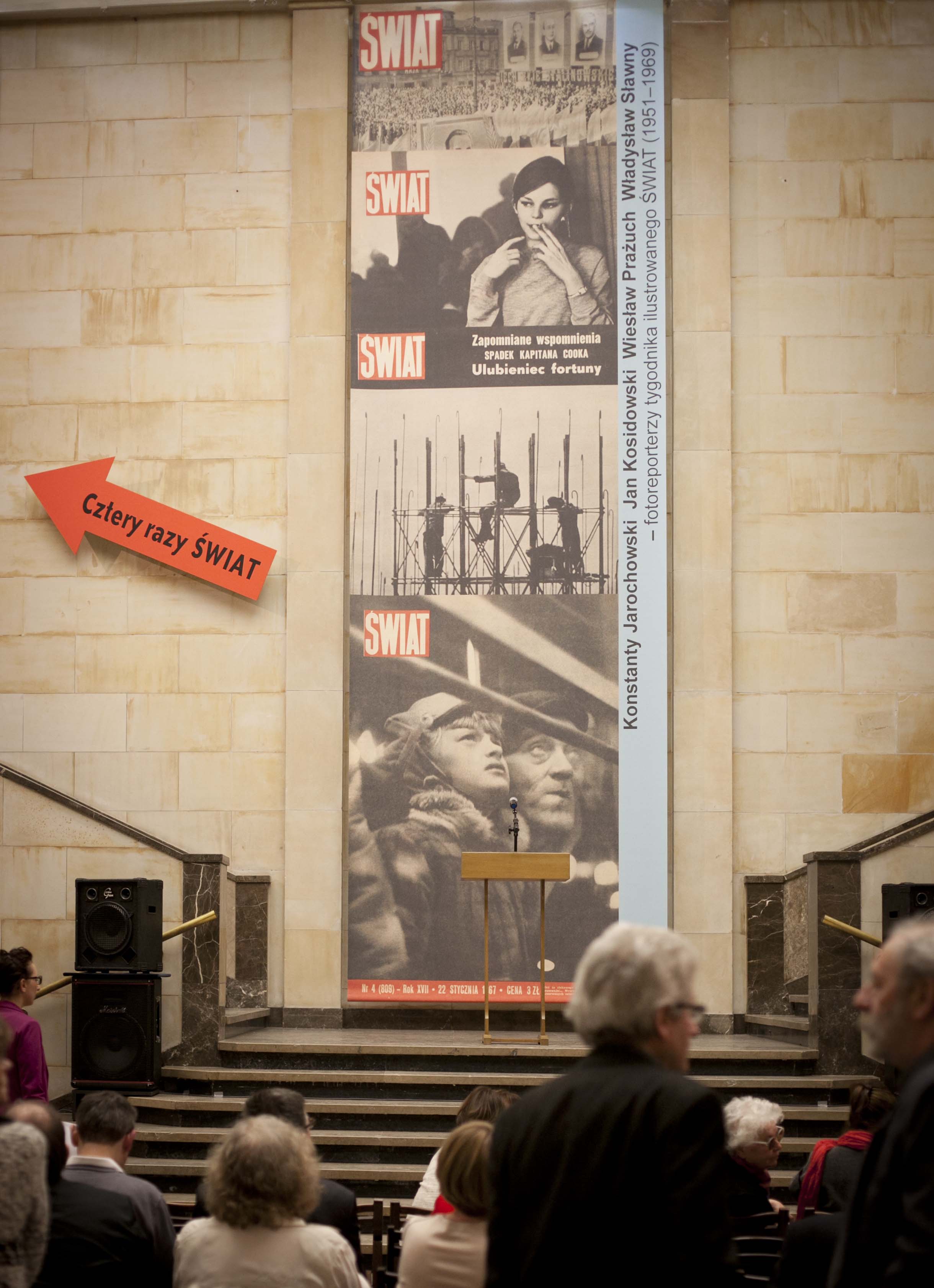 Wystawa Cztery razy ŚWIAT jest pierwszą muzealną prezentacją zdjęć, które powstawały dla słynnego tygodnika „Świat” w latach 1951-1969 oraz dorobku czołowych fotoreporterów pisma: Władysława Sławnego (1907-1991), współzałożyciela i pierwszego szefa działu fotograficznego czasopisma, oraz Konstantego Jarochowskiego (1920-1978), Jana Kosidowskiego (1922-1992) i Wiesława Prażucha (1925-1992). Zestawione są zdjęcia opublikowane oraz te, które nie mogły dostać się do publicznego obiegu.