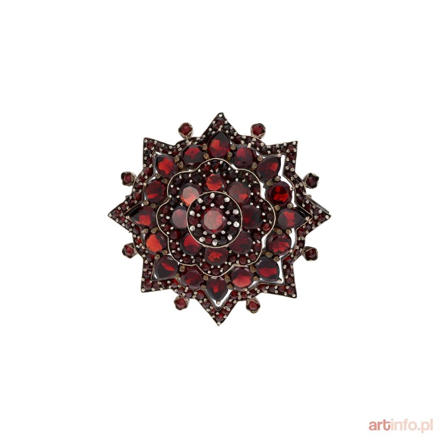 BROSZA W FORMIE KWIATU Z GRANATAMI, koniec XIX...