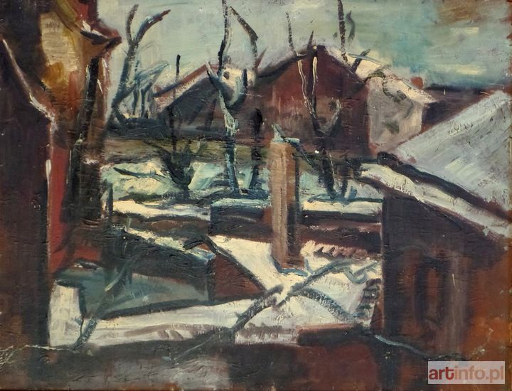 Obraz malowany techniką olejną na sklejce o wym. 66 x 84 cm. Sygnowany p/g "D.Seifert". Na odwrocie namalowany zimowy pejzaż miejski.