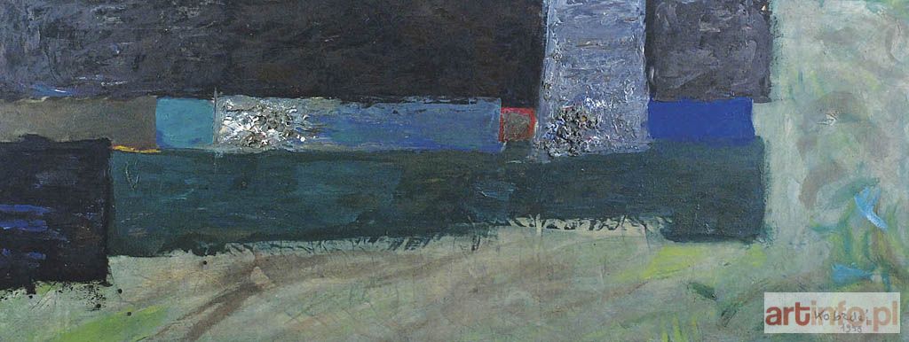 olej, tempera, płótno, 42,5 x 109 cm; sygn. p. d.: Kobzdej / 1958 na odwrocie: Al. Kobzdej / Warszawa, nalepki z numerami oraz dwie nalepki wystawowe z danymi obrazu (w jęz. włoskim i polskim).