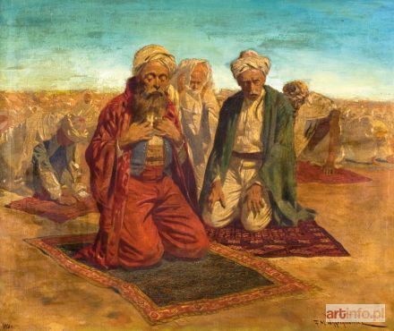 Olej, płótno 62 x 74 cm Sygnowany p.d.: "Modlitwa przed pochodem" | F.M. Wygrzywalski; l.d.: 1931 r.