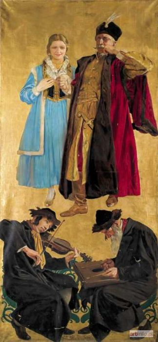 Olej, płótno, 270 x 118, 5 cm Sygn. u dołu. : 1928 / F. M. Wygrzywalski fecie (zaklejone) Napis l. d.: POLONEZ