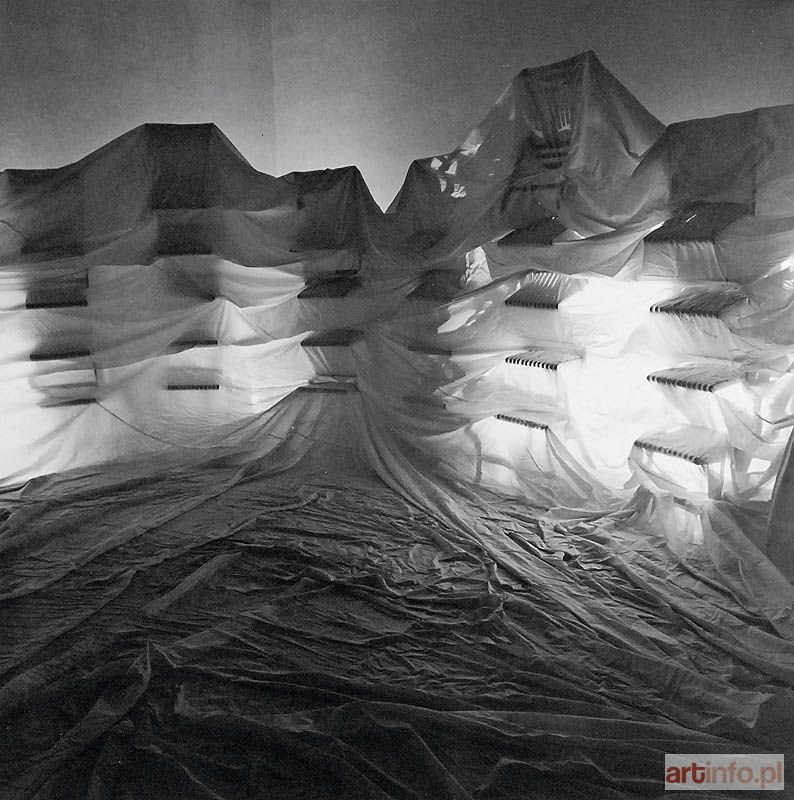 The photograph was made during the Transgressions II exhibition in the National Museum in Wrocław (1993). The Energy of Space, Loose Space, Panic Space series (1986-1993) were an attempt at finding a subjective space of art by Natalia LL. She pursued them in installations, photography, painting, film and video. The artist re-created the Energy of Space installation during the Three Women exhibition in the Zachęta National Gallery of Art in Warsaw (2011).