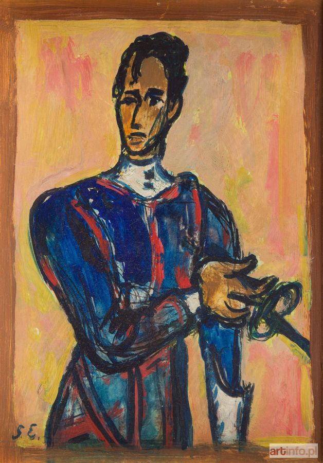 olej/papier naklejony na tekturę, 22,5 x 15,5 cm sygnowany monogramem l.d.: 'S.E.' na odwrociu papierowa nalepka wystawowa: 'EXHIBITION | STANISŁAW ELESZKIEWICZ | 1900 - 1963 | Lipert Gallery | 147 Milton Street | Greenpoint Brooklyn, NY 11222 | May 10 - June 14, 1986'