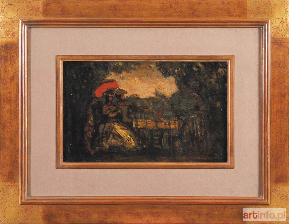 olej/tektura, 21 x 34 cm (w świetle oprawy) sygnowany p. d.: `S Eleszkiewicz` na odwrocie tytuł autorski
