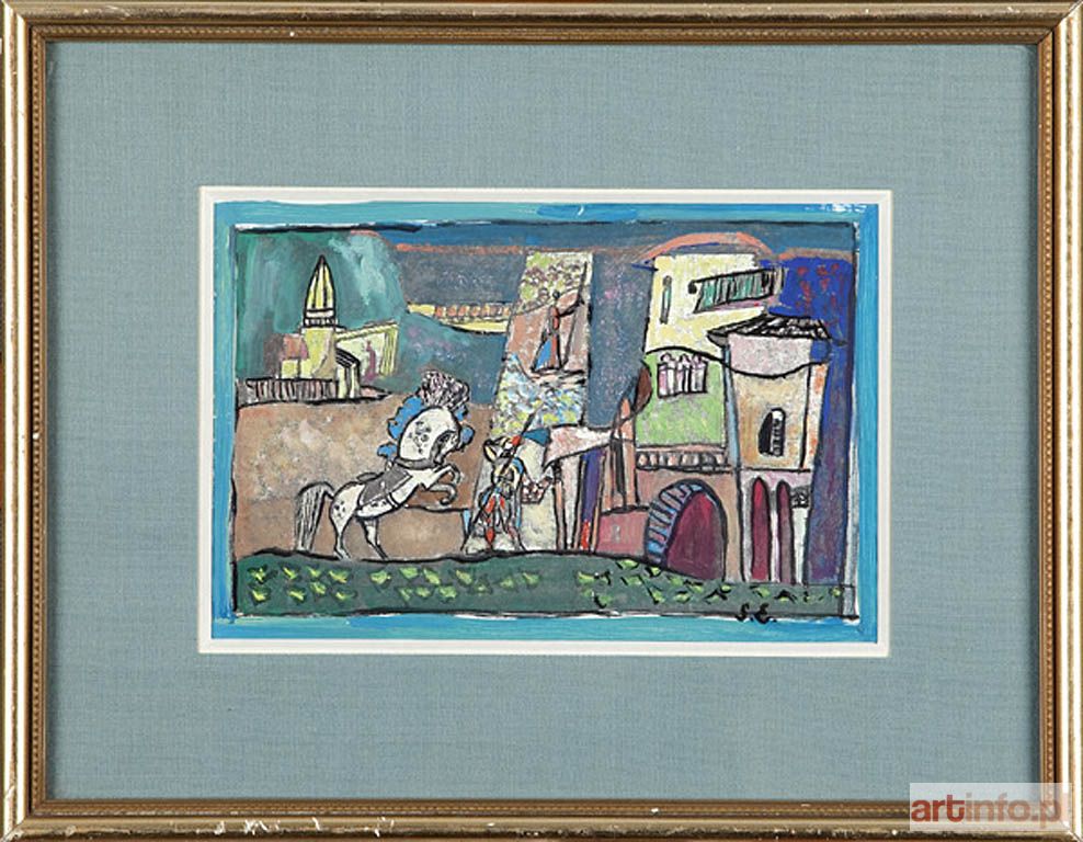 gwasz/papier, 15 x 22,5 cm (w świetle oprawy) sygnowany p. d.: `E. S.`