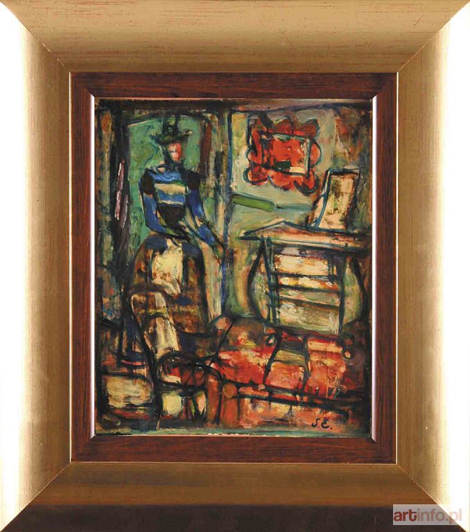 olej/tektura, 26 x 21,2 cm sygnowany p. d.: `E. S.` na odwrocie tytuł autorski