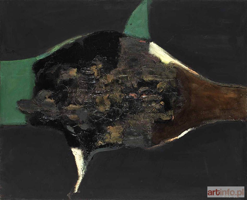 Związany był z awangardową "Grupą Krakowską". Twórczość malarska Tadeusza Kantora to głównie abstrakcje, którymi rozbijał wszelką spójność sztuki i pokazywał rolę artystycznego gestu oraz konieczność poszukiwania odpowiednich sposobów artystycznej wypowiedzi. Widoczne w prezentowanym obrazie zauroczenie artysty malarstwem materii czyni z niego płótno wyjątkowe, w którym zderzenie intensywnych, gorących tonów z zimnymi, zmatowiałymi barwami intensyfikuje wewnętrzną dynamikę kompozycji. Obraz urzeka stroną wizualną, wibracjami plam, linii i barw i pobudza skojarzenia ze światem przedmiotowym.