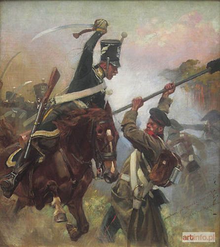 * Jest to epizod z wojny polsko-rosyjskiej 1831 roku. Żołnierze 5 pułku strzelców konnych (dawnego pułku strzelców konnych gwardii) ukazani są w ataku na obsługę dział rosyjskiej artylerii. Dowódcami pułku w okresie powstania listopadowego i wojny polsko-rosyjskiej 1831 roku byli kolejno płk Bonifacy Jagmin i płk Benedykt Zielonka. (informacje pozyskane od Pana Mieczysława Sicińskiego)