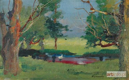 KOSSAK Wojciech | Pejzaż ze stawem i gąskami