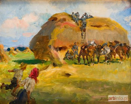 olej/deska, 39,3 x 49,5 cm (w świetle oprawy) sygnowany i datowany p.d. 'Wojciech Kossak | 1917' na odwrociu papierowe nalepki z liczbami '199' oraz '114.' oraz opisany ołówkiem